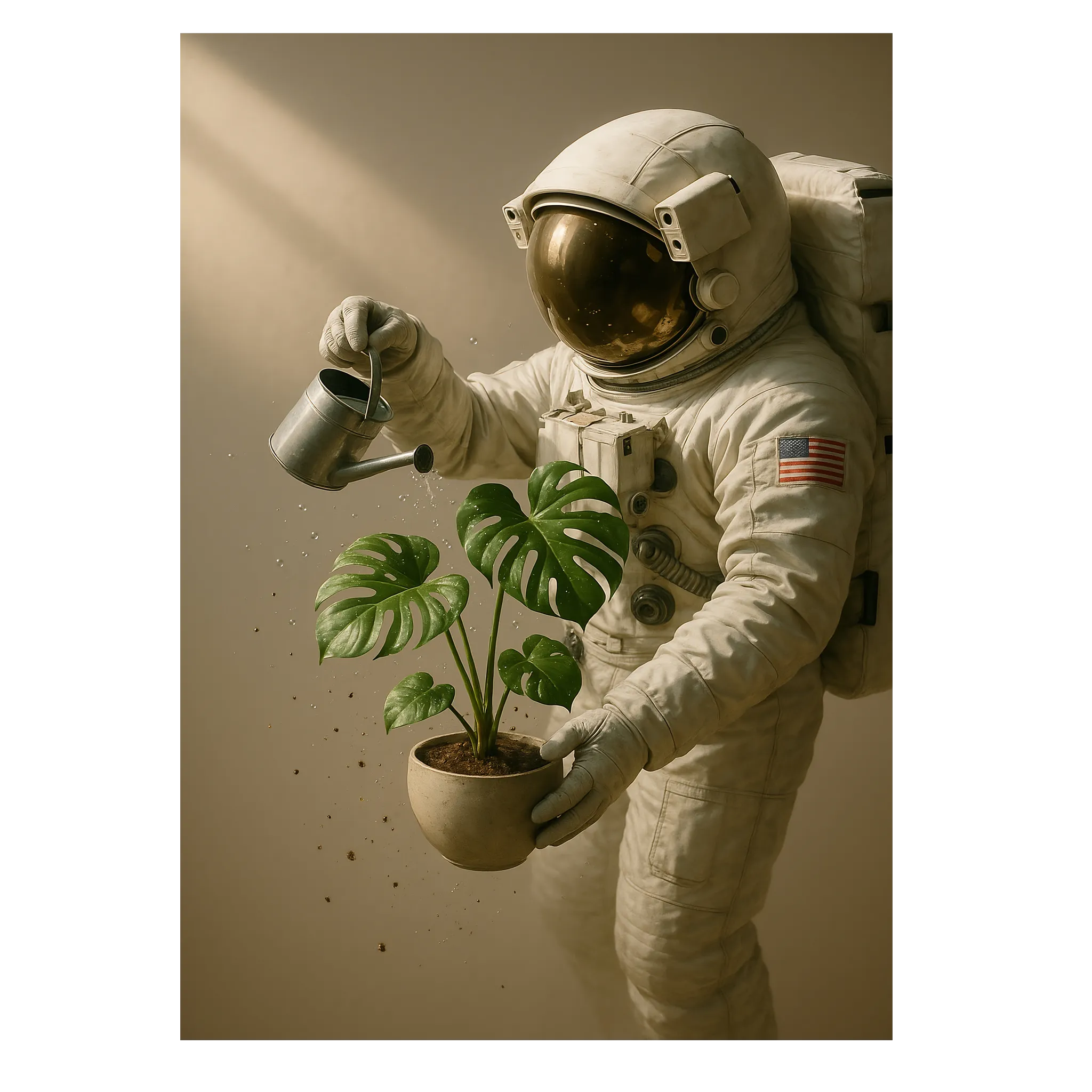 Plakaten handler ikke kun om en astronaut – den handler om håb, vækst og omsorg. Den grønne plante midt i det kolde og øde rumsæt symboliserer livets skrøbelighed, men også dets styrke. Astronauten, der plejer planten, bliver et billede på menneskets ansvar overfor naturen – selv når vi bevæger os ud i universet. Det er en plakat, der rummer både humor og dybde, og netop derfor fungerer den i så mange forskellige hjem.