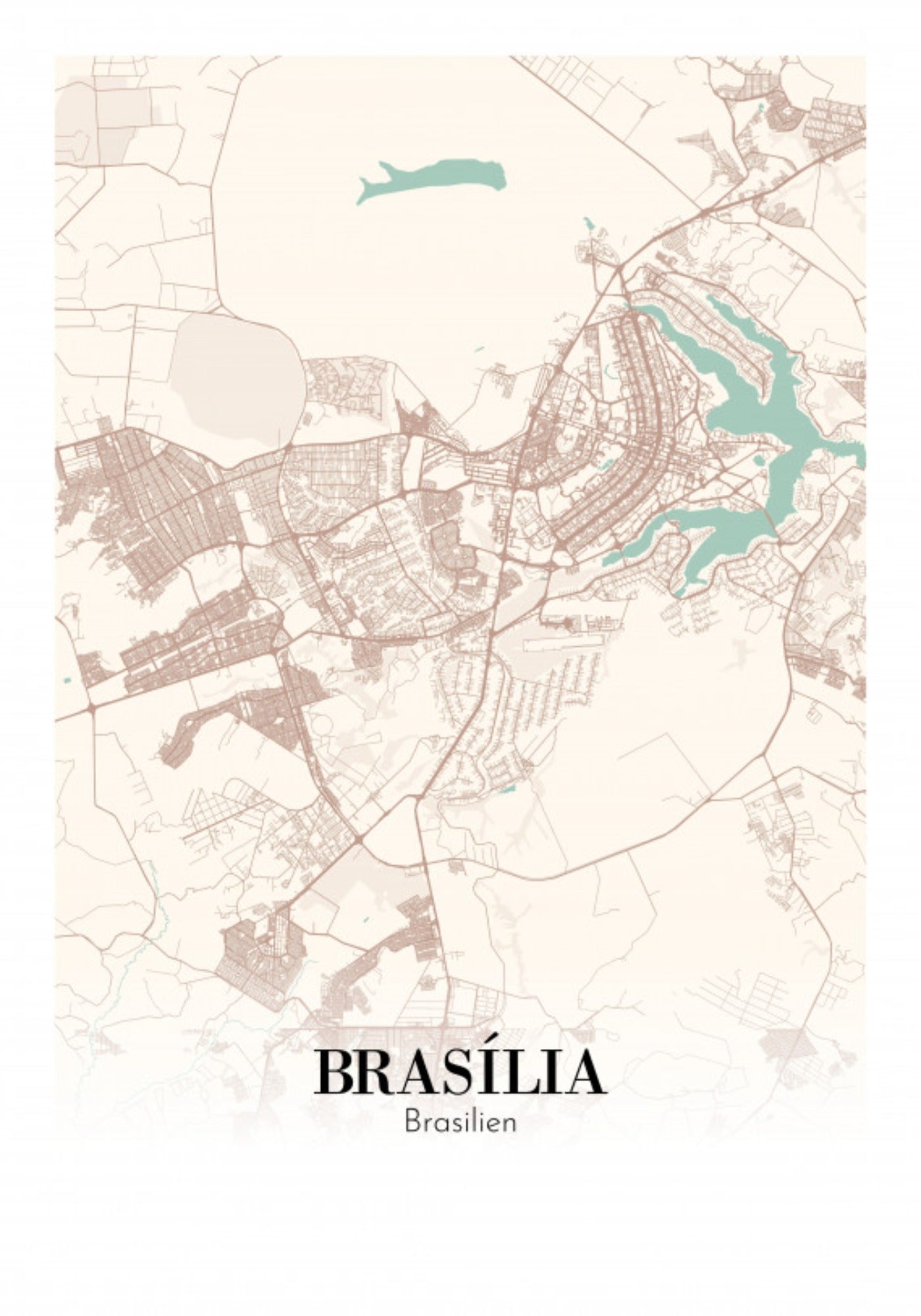 Få en byplakat med Brasiliens hovedstad Brasília op på væggen. Den moderne stil og de forskellige farvemuligheder sikre, at plakaten passer ind i et hvilket som helst hjem eller kontorlokale.