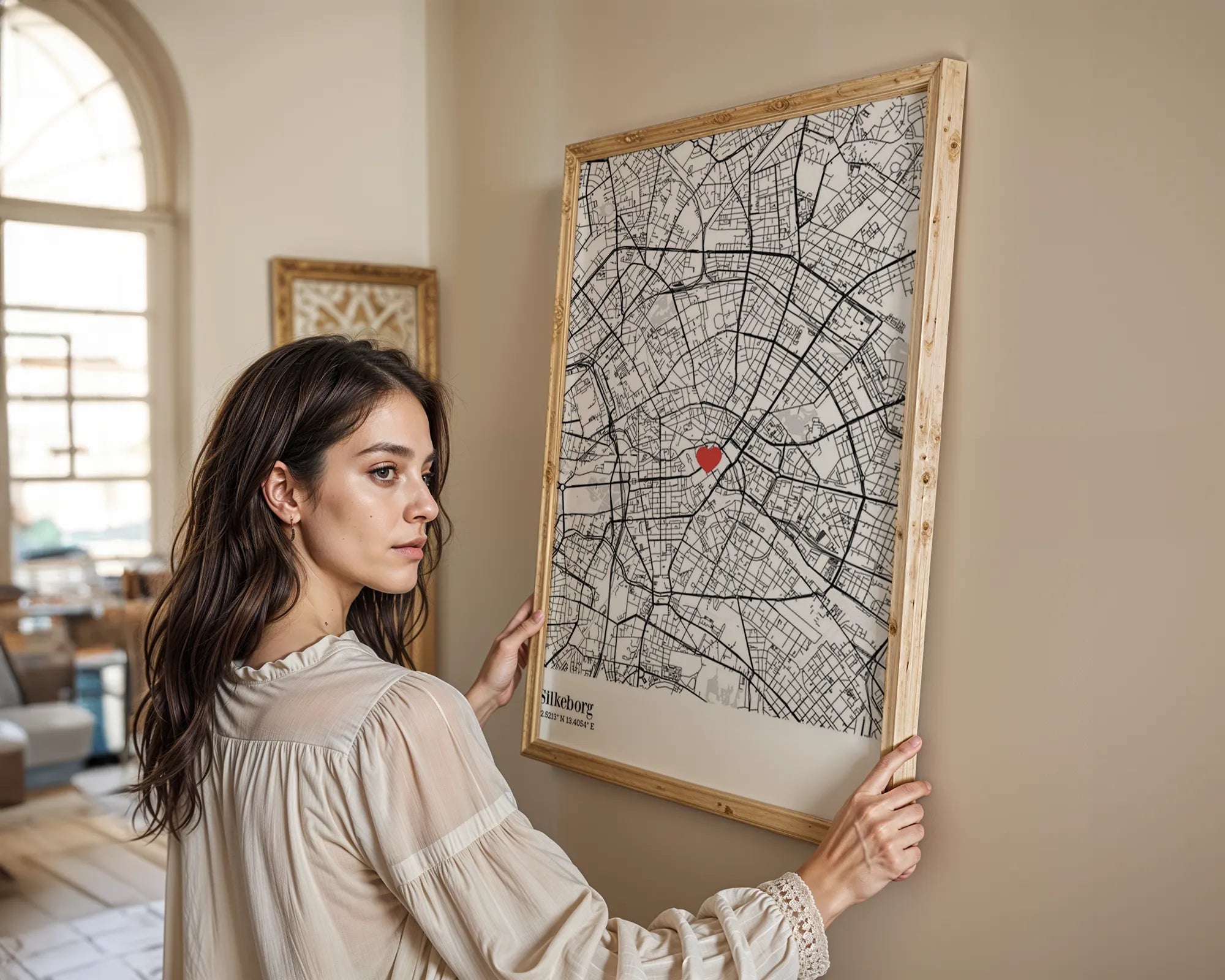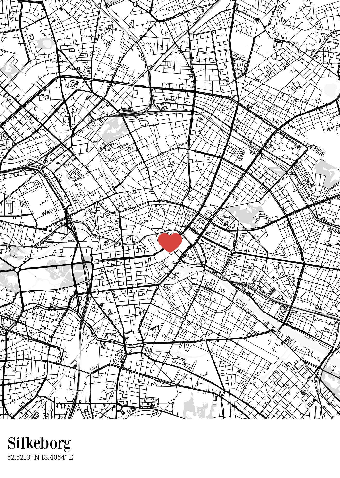 Skab din helt egen unikke plakat med dette bykort, som giver dig mulighed for at sætte en pin i kortet. Træk rundt i kortet så pinnen placeres på lige præcis det sted, som står dit hjerte nært. Vores smarte intuitive editor gør det nemt at ændre farver og tekst.