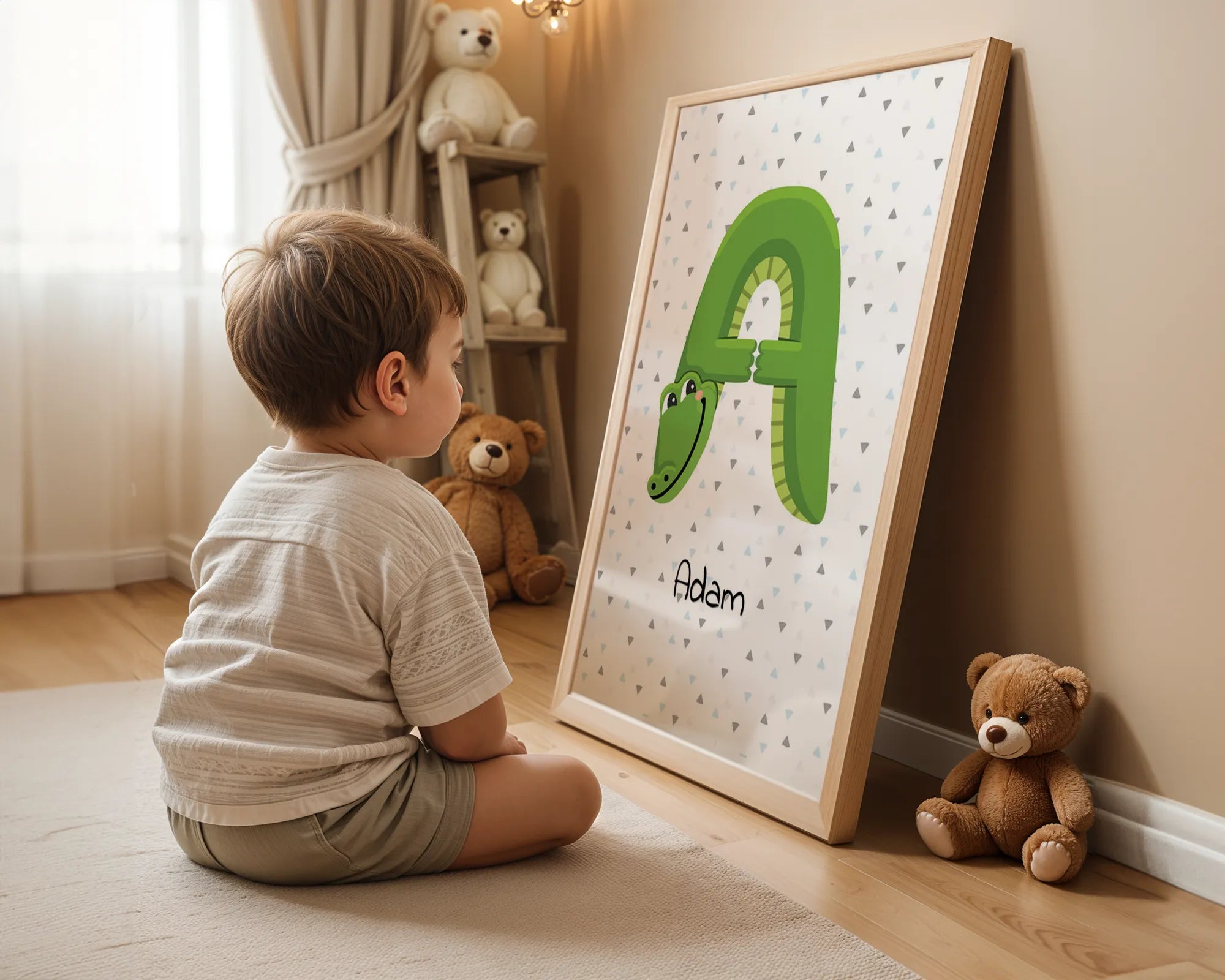 Denne søde og sjove navneplakat er den perfekte vægdekoration til børneværelset. Med den farverige plakat lærer barnet hurtigt at stave sit navn samtidig med at den er super sød at have hængende på børneværelset.