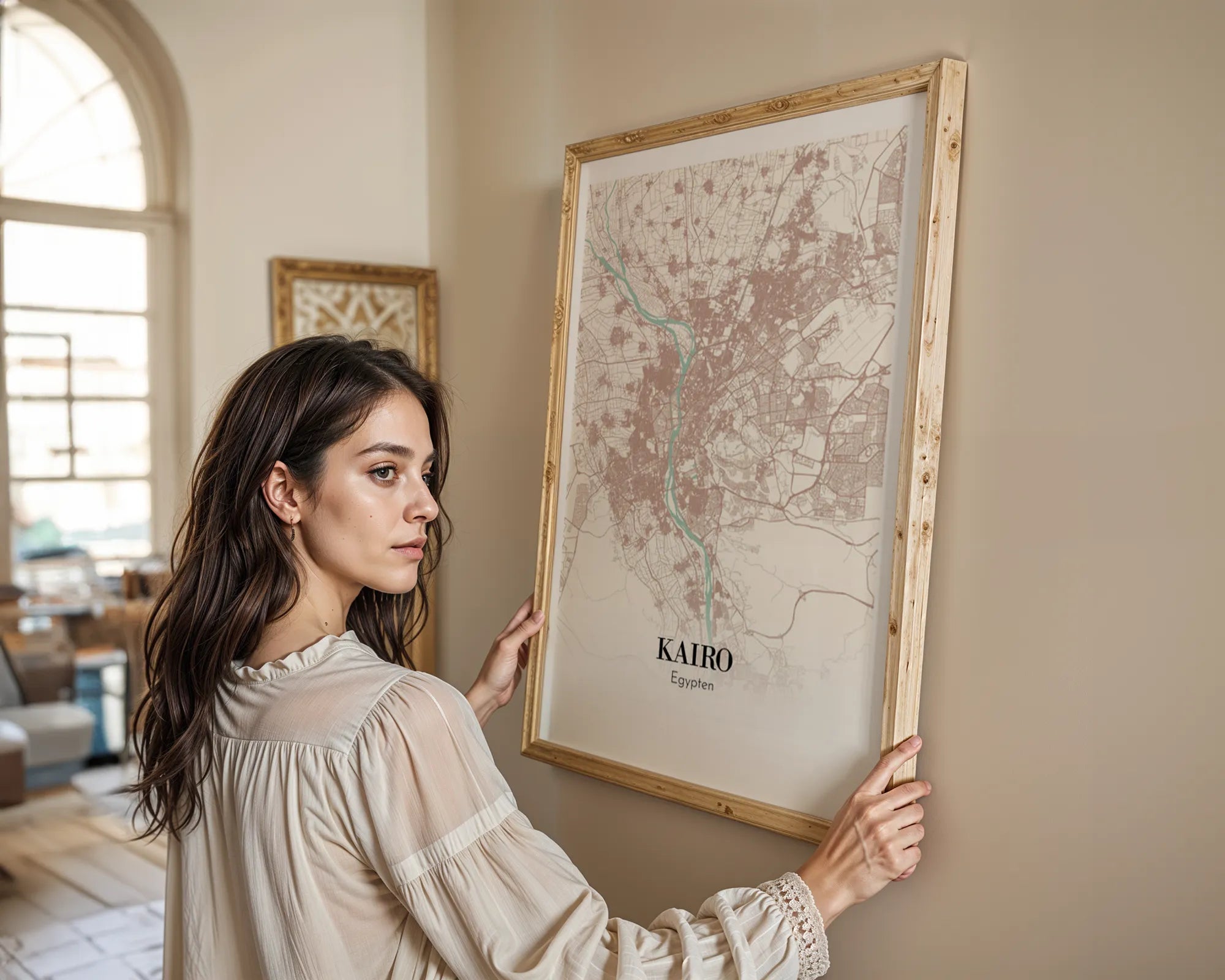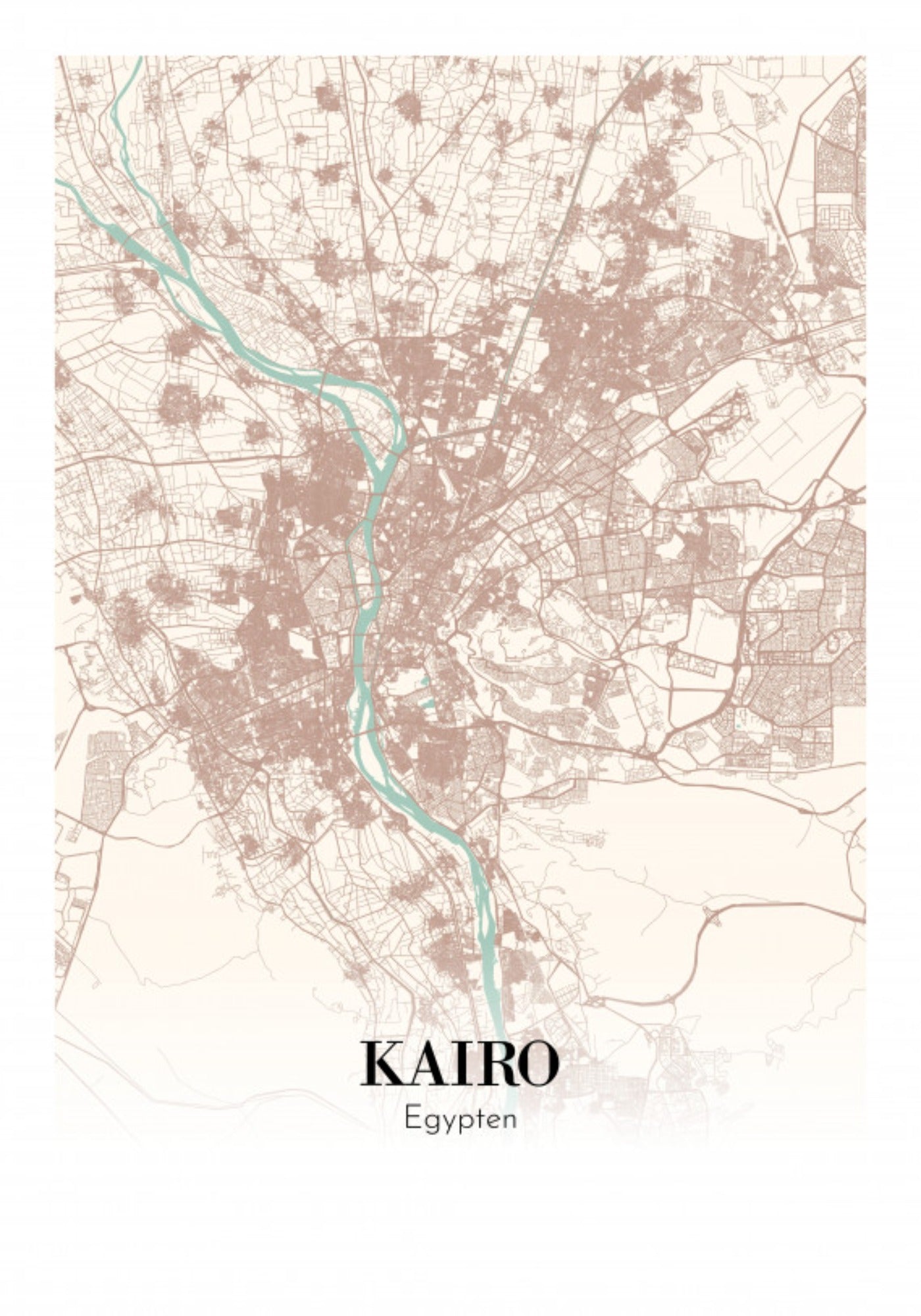 Få en byplakat med Egyptens hovedstad Kairo op på væggen. Den moderne stil og de forskellige farvemuligheder sikre, at plakaten passer ind i et hvilket som helst hjem eller kontorlokale.