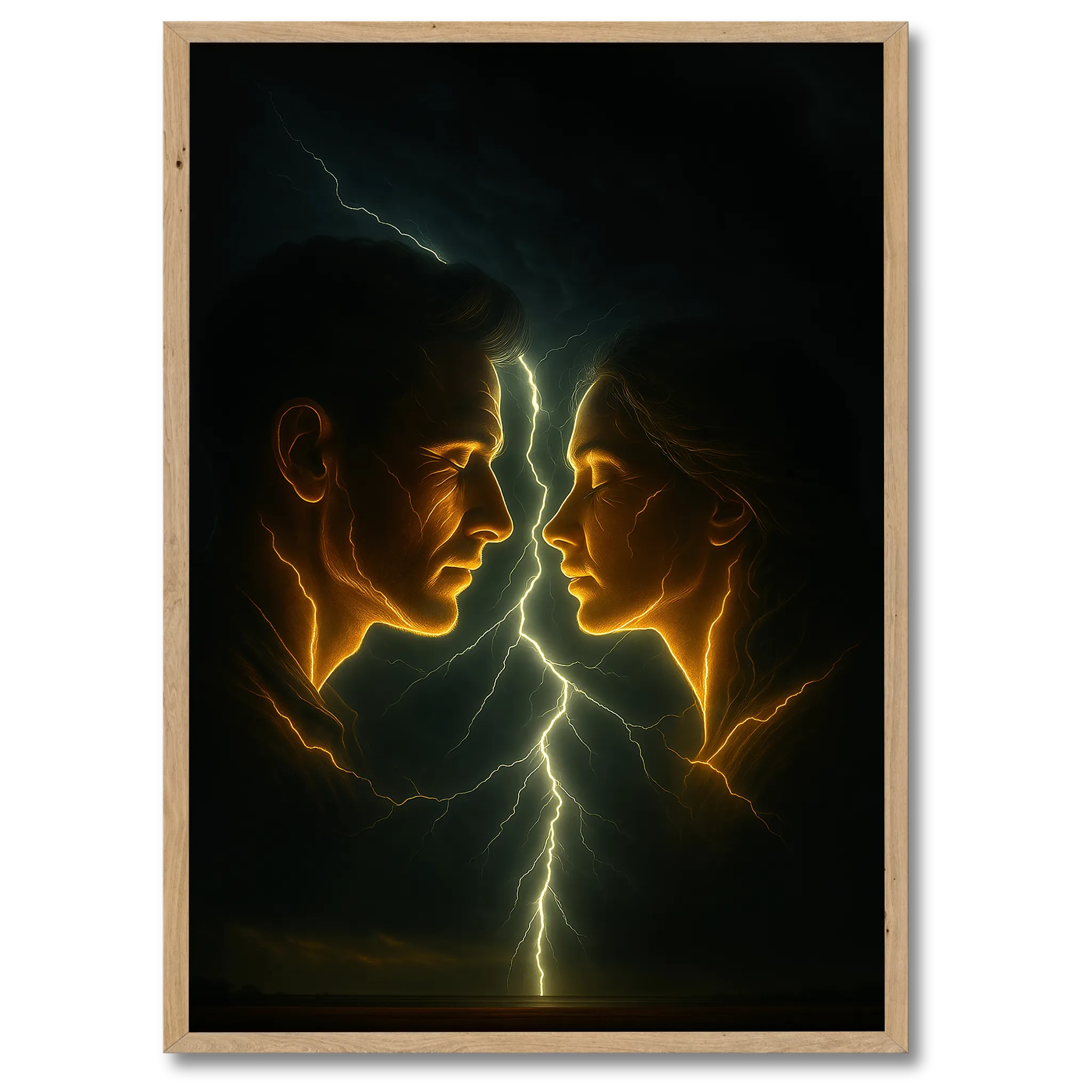 Der er øjeblikke, hvor kunst kan fange noget, ord ikke kan beskrive. Lightning Kiss plakat er en af de plakater, der gør netop det. Motivet viser to menneskelige silhuetter, der mødes i et kys – forbundet af lynets dramatiske energi. Resultatet er en illustration, der både er romantisk, intens og fuld af symbolik. En plakat, der giver ethvert rum en stemning af passion og styrke.