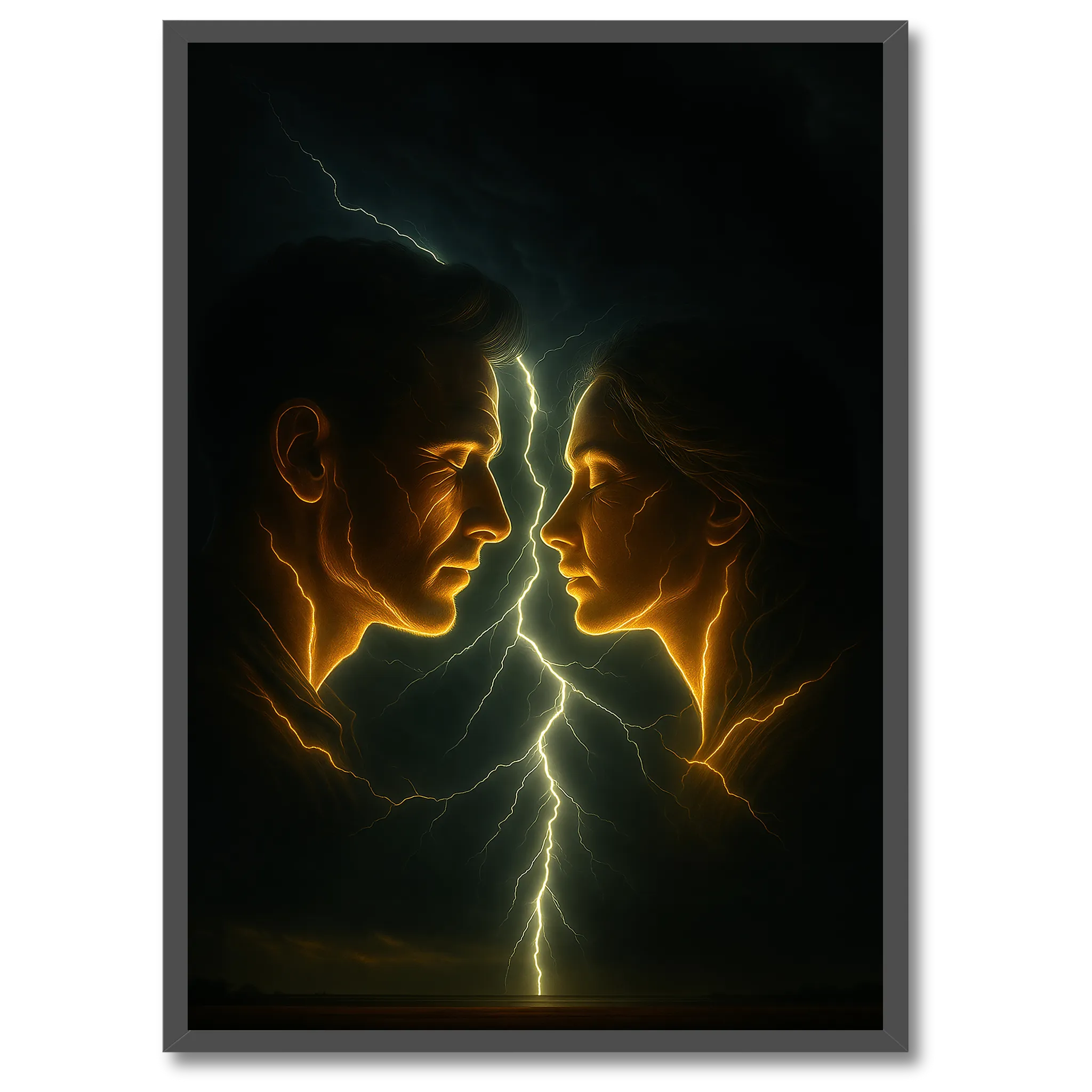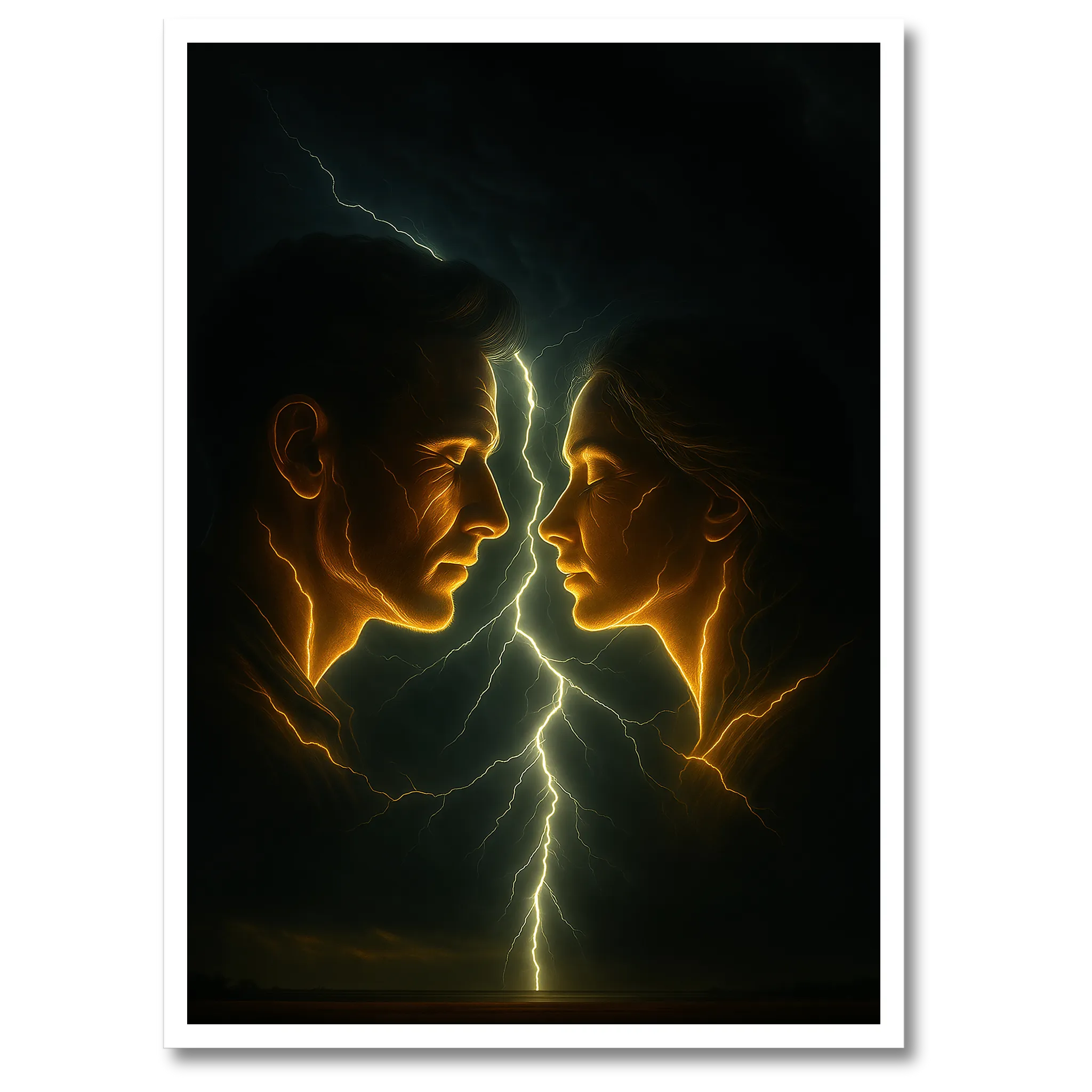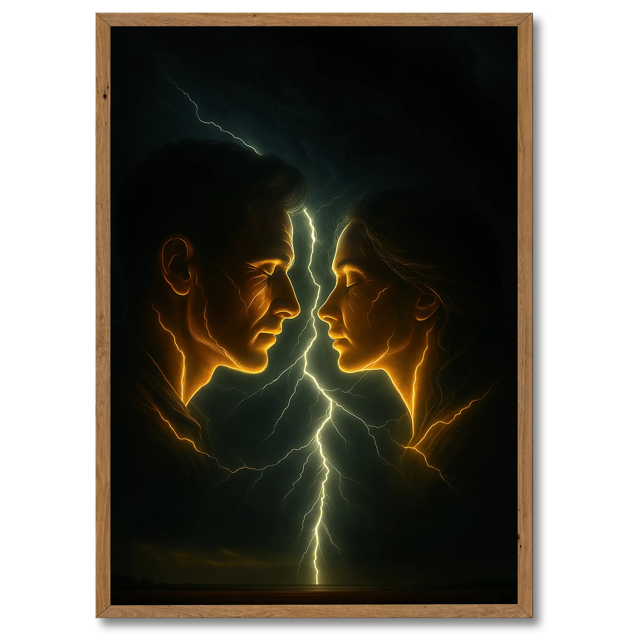 Lynet repræsenterer energi, transformation og intensitet. Når det kombineres med et kys, bliver det et billede på kærlighedens elektriske gnist. Det er en påmindelse om, at kærlighed kan være både blid og voldsom, både tryg og eksplosiv. Lightning Kiss plakat fanger denne dobbelthed på en smuk og dramatisk måde, som gør den til mere end bare en illustration – den er et symbol.