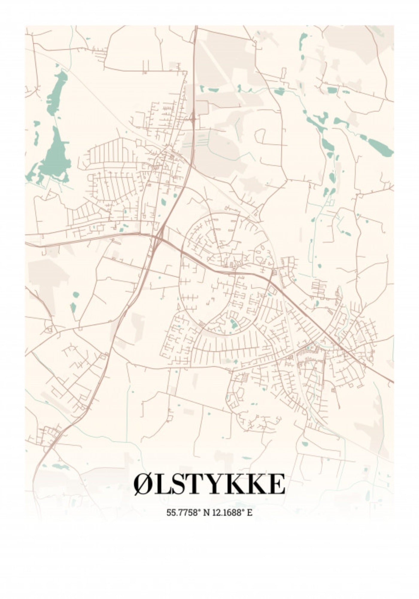 Få en byplakat med Ølstykke på på væggen. Den moderne stil og de forskellige farvemuligheder sikre, at plakaten passer ind i et hvilket som helst hjem eller kontorlokale.