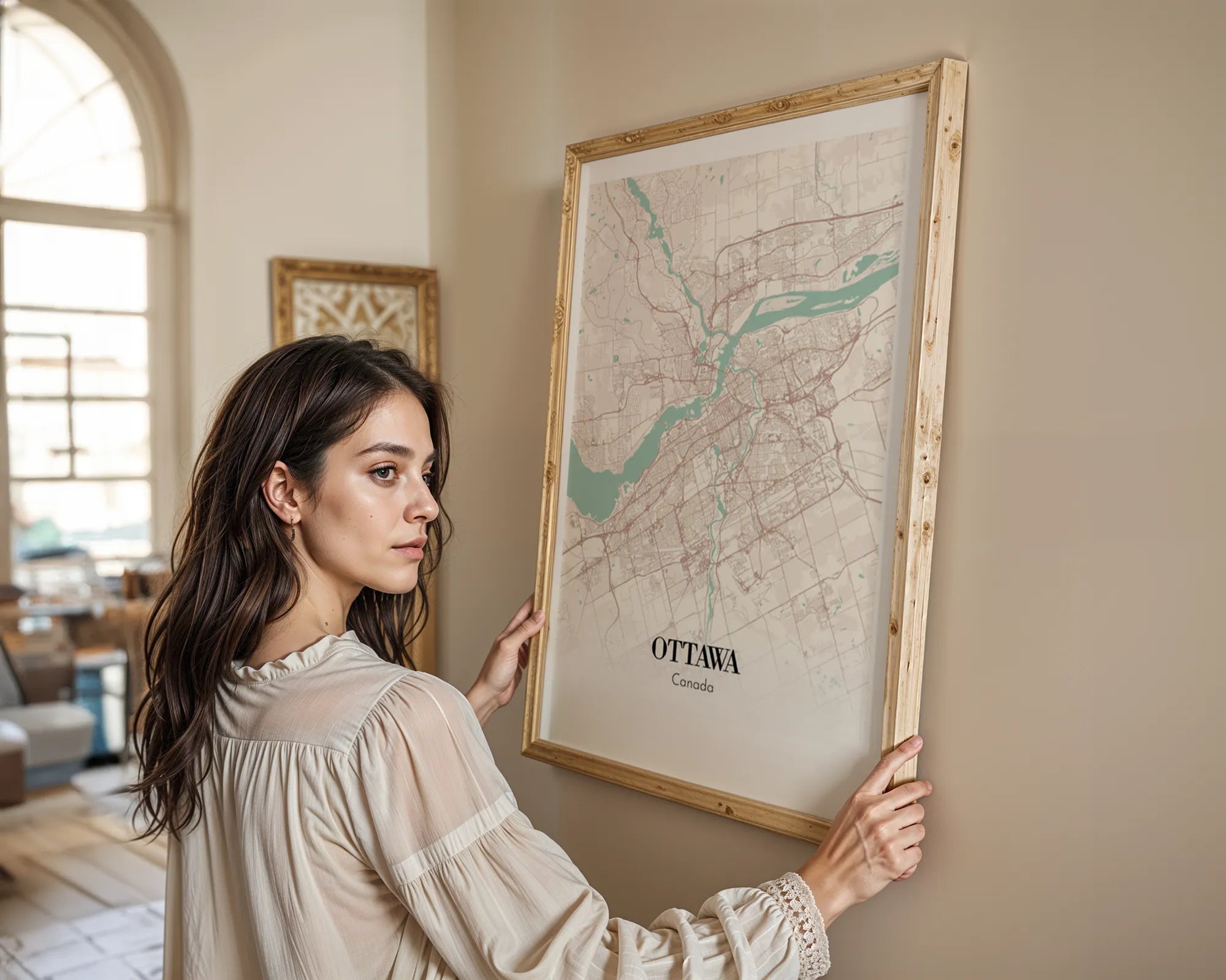 Få en byplakat med Canadas hovedstad Ottawa op på væggen. Den moderne stil og de forskellige farvemuligheder sikre, at plakaten passer ind i et hvilket som helst hjem eller kontorlokale.