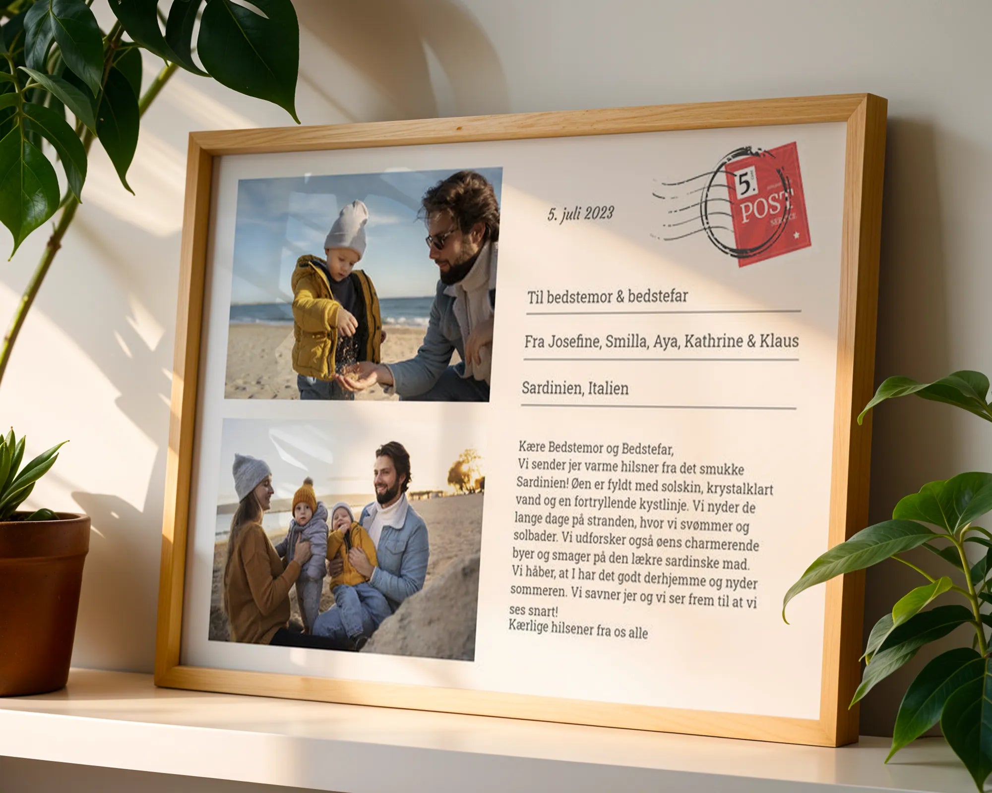Skriv en hjertevarm besked: Del dine følelser og minder fra ferien ved at tilføje en personlig hilsen. Fortæl dem, hvor meget du savner dem og del nogle af dine favoritoplevelser fra turen - fuldstændig som du kender det fra det traditionelle postkort.