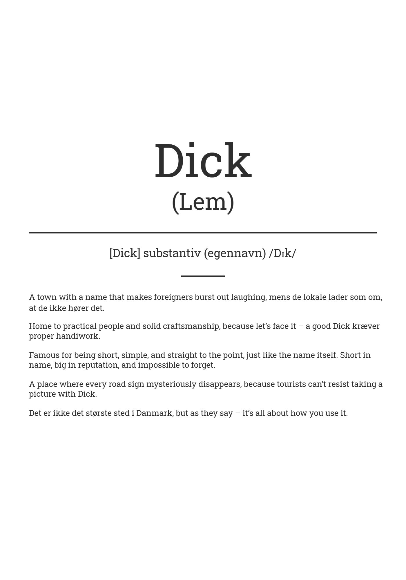Plakaten er oplagt til dig, der er fra Lem – eller bare har humor nok til at hænge en plakat op, som kræver et ekstra kig. Den passer perfekt ind i hjem, hvor man gerne må tage sig selv lidt mindre alvorligt. Og så pynter den jo faktisk også.