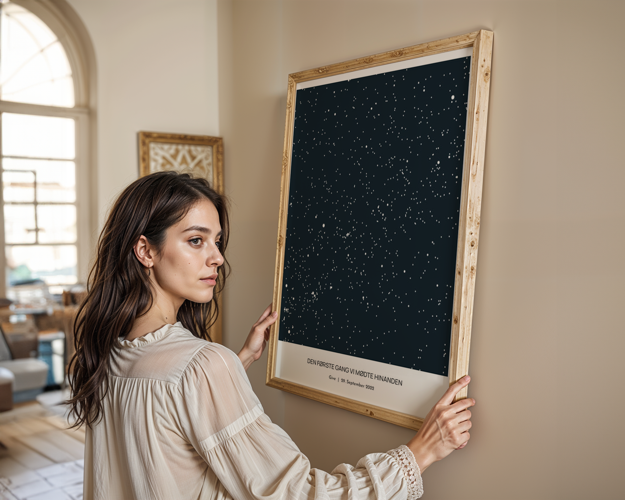 Leder du efter en personlig og mindeværdig gave? Vores stjernehimmel plakat er en fremragende gaveidé til bryllupper, fødselsdage, jubilæer eller andre specielle lejligheder. Ved at give en stjernebillede plakat skaber du ikke blot et kunstværk, men et varigt minde, der kan nydes dag efter dag.
